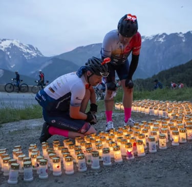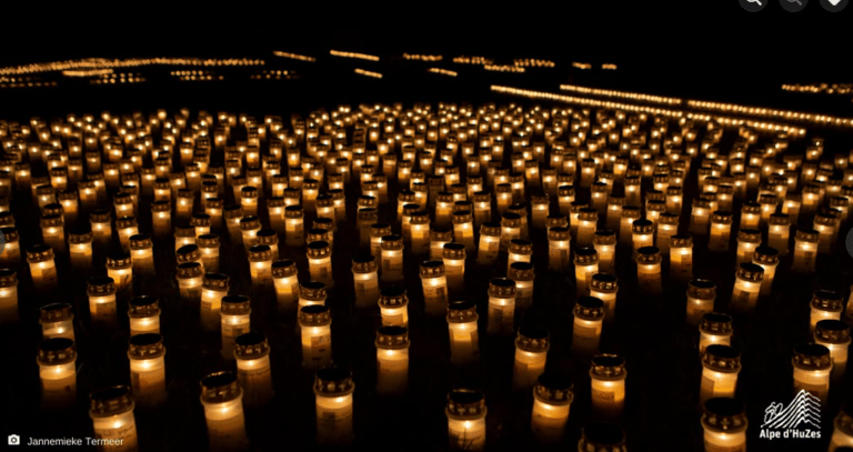 Elk jaar worden er duizenden kaarsjes neergezet voor dierbaren die gemist worden. Deze kaarsjes staan in alle 21 bochten van de Alpe d’Huez, met uitzondering van bocht 16.